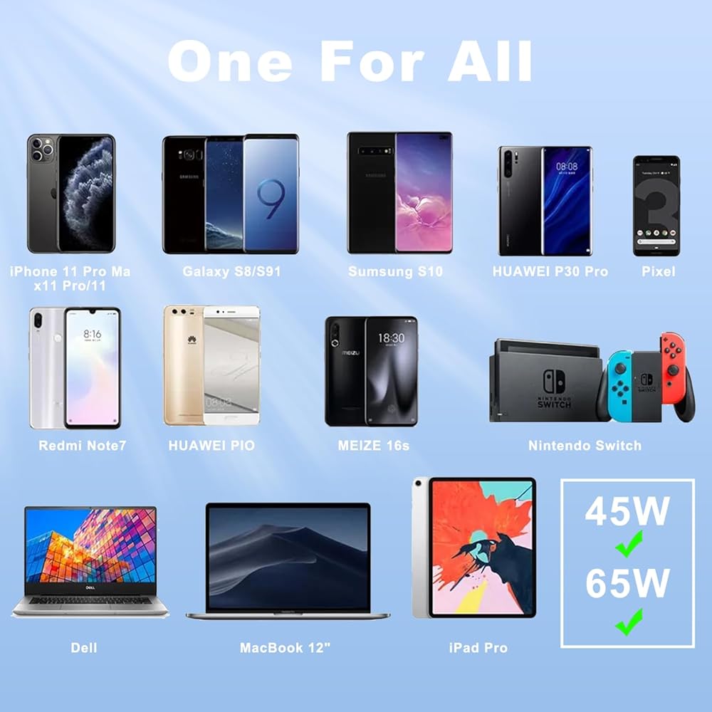 65W USB C Charger - USB C Laptop Computer Charger 65 watt Type C : for Lenovo/HP/Dell/Steam Stream Steak Deck/Asus/Samsung/Acer/MacBook pro or Smart Phones Universal USB-C Fast AC Adapter Power Cord