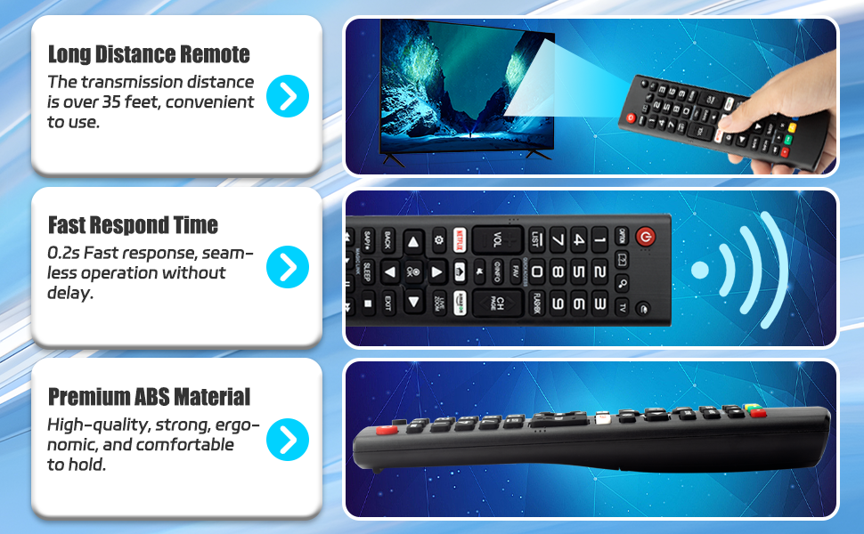User-Friendly Design: This Universal for LGLGTV Remote features convenient shortcut buttons, making it an ideal replacement for your old or damaged TV Remote. Its compact size is comfortable to grip and hard to slip.