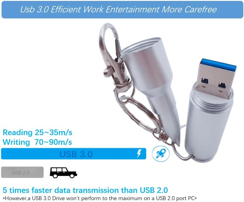 Outstanding read/write speed,with the latest USB 3.0 interface.Transfer speed up to 5 times faster than standard USB 2.0 drives.