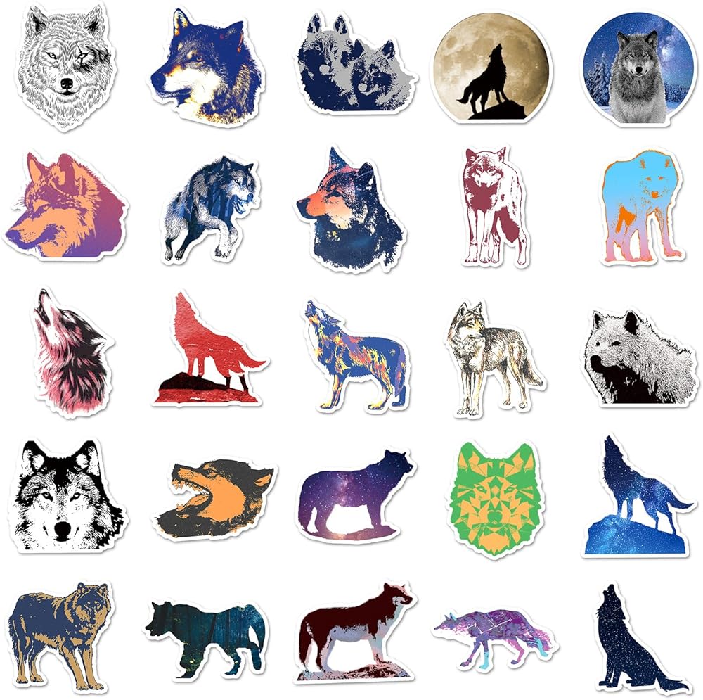 Zutena 100pcs Wolf Stickers for Water Bottles Laptop Phone Case Skateboard Computer iPad Notebook,Waterproof Vinyl Wolf Stickers Decals Pack for Kids Boys Teens Party Favors