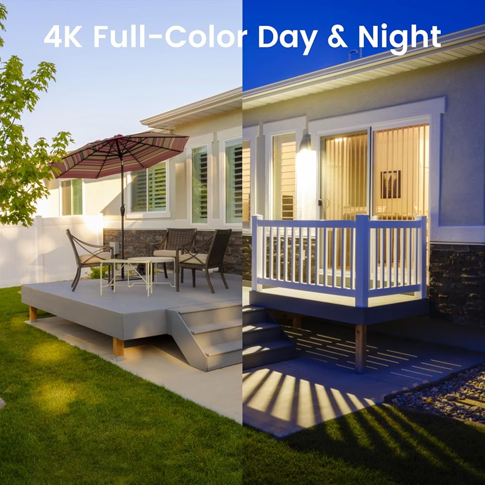 【8MP Ultra HD Smart Dual Light Night Vision】 With a resolution of up to 3840x2160, this 4K PoE network camera offers crisp images and video. Equipped with infrared and warm light sources, the upgraded 8MP PoE IP camera ensures clear imaging in a wide range of lighting conditions. At night, when a person or vehicle is detected, warm lights illuminate, providing a color image. In the absence of objects, it switches to infrared mode for a clear black and white image.