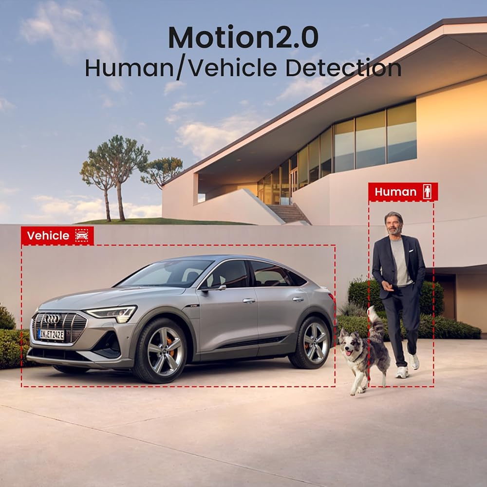 【Motion Detection 2.0】 This 8MP IP camera uses advanced artificial intelligence detection technology to identify people or vehicles by shape, minimizing unwanted alarms such as animals or shadows. It can also specify the type of detection when motion alerts are sent to you, so you can know what's going on just by glancing at your phone's screen. It can be monitored and protected 24/7.