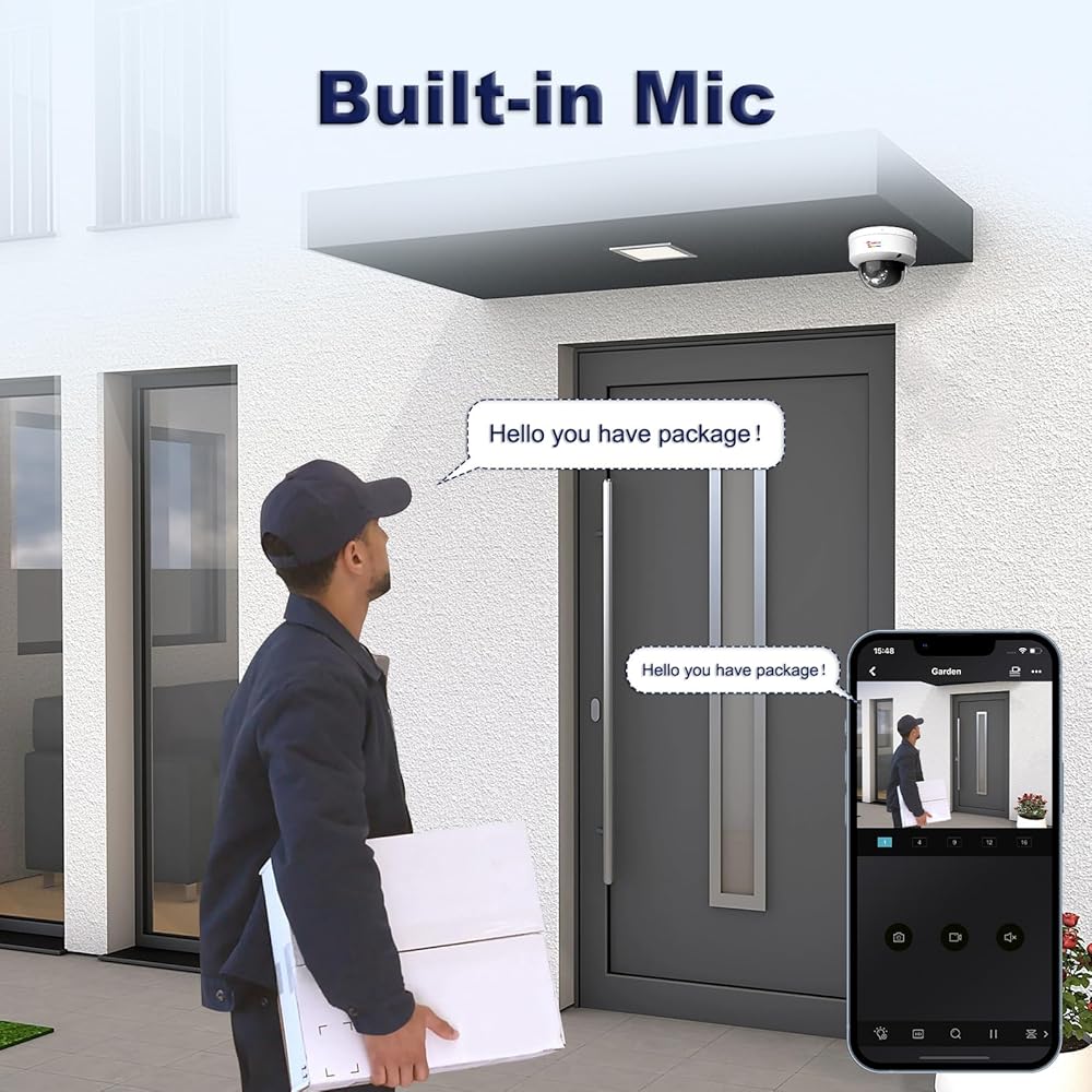 【Unidirectional Audio and Advanced H.265+ Coding】 This 4K PoE Camera is equipped with a microphone that allows you to listen to family, friends, and pets and spot intruders from a distance. Latest H.265+ compression technology It can record more video and consume less bandwidth. Enjoy up to 256GB of storage SD (SD card not included). Store and record daily events. Your footage will be with you as a safe secret and keep your home and loved ones safe.