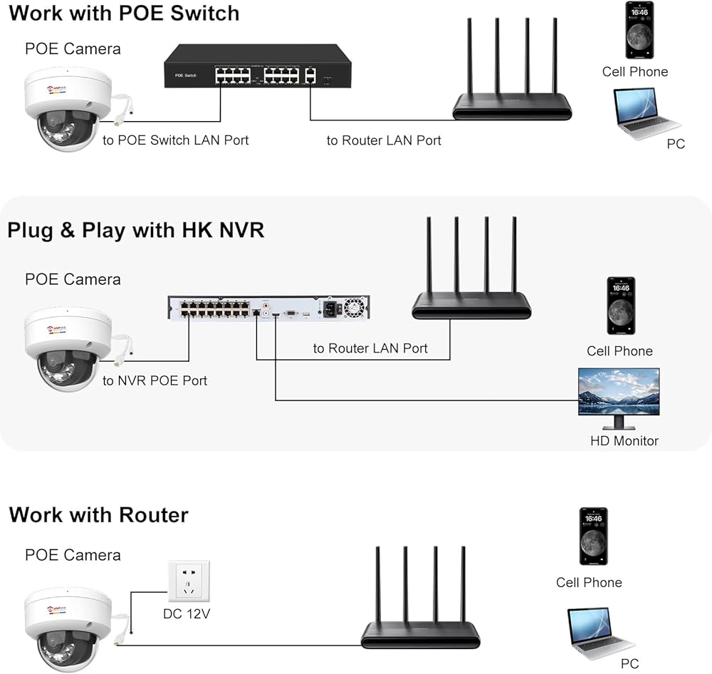 【Easy to operate and use】 Anpviz PoE cameras only require an Ethernet cable to connect NVR power and data and work with Thrid Software, ISpy, BlueIris, Milestone, etc. With third-party NVRs, Anpviz 4K PoE NVRs are highly recommended (search for B099DHWQHT, B0887RS1DV); Use ISpy, Blueiris, Milestone software. Can be used with NAS and QNA. Easy to view on IE, Firefox, Google Chrome and other web browsers.