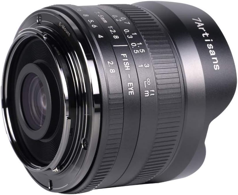 7artisans 7.5mm F2.8 II Fisheye Lens APS-C 190° Ultra Wide Angle Manual Fixed Lens, Compatible with Olympus and Panasonic M4/3 Micro 4/3 Mount Cameras Black
