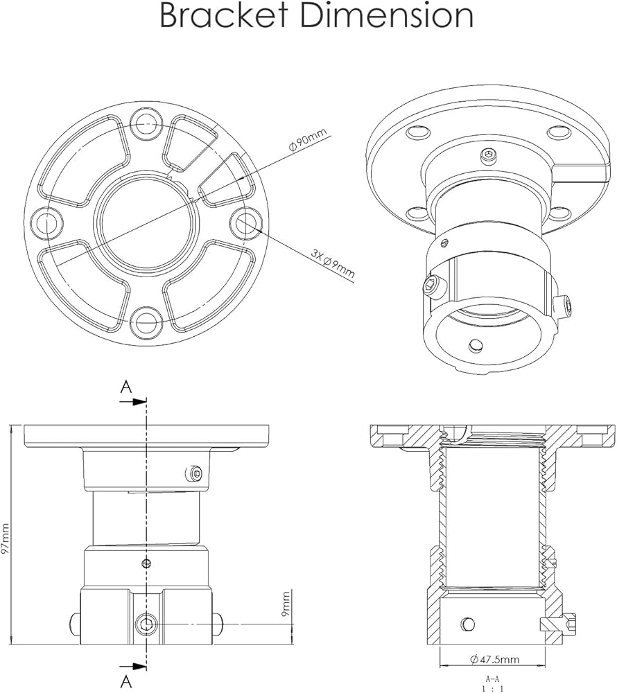 - Compatible with mainstream Hikvision dome PTZ cameras with diameter of 47.5mm to fit PTZ camera top
