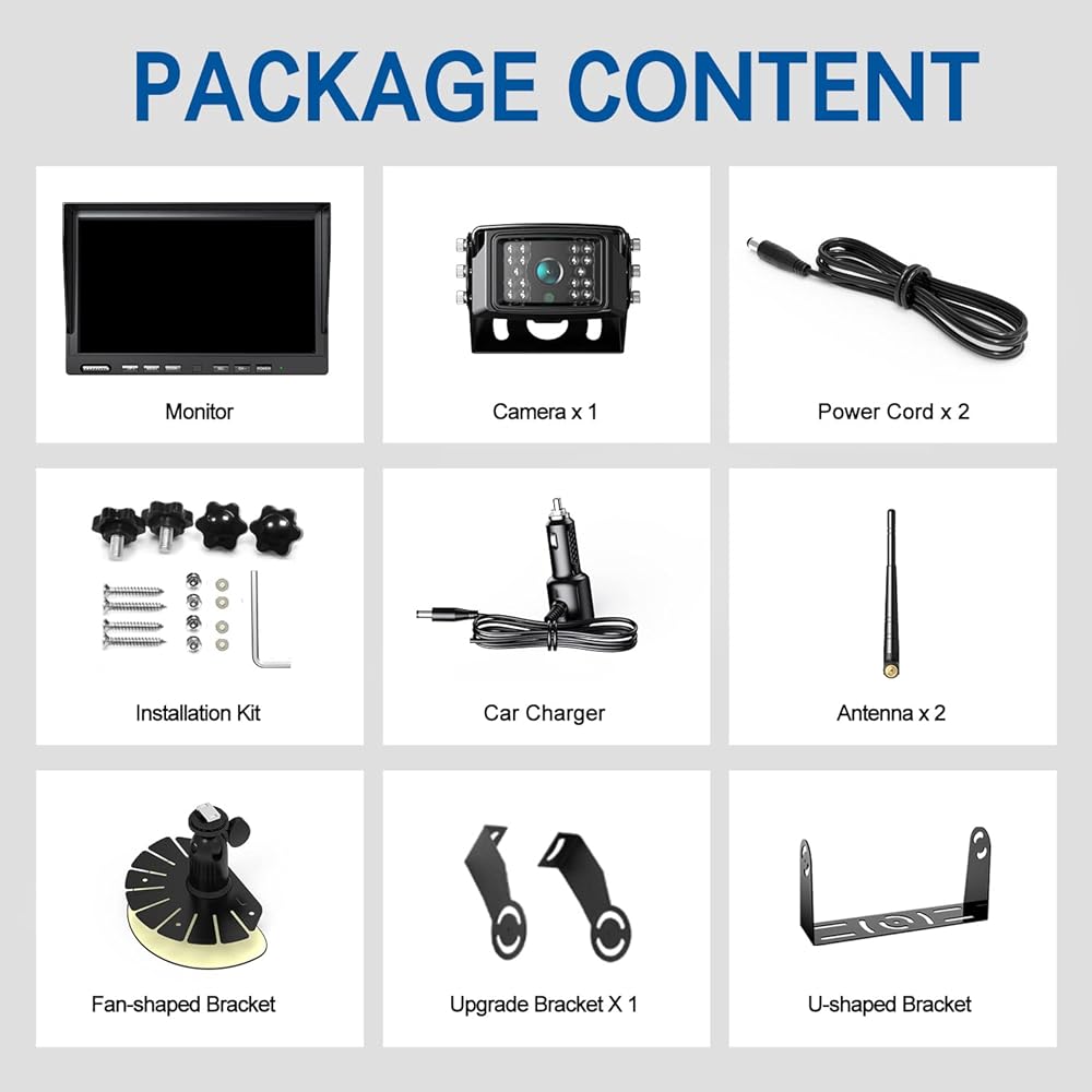 ☆ Please note that the system transmits the camera image to the monitor via a wireless 2.4GHz signal. There is no cable between the camera and the monitor, but the camera and the monitor need power cord to get power and work, which saves yourself the trouble of charging and provide convenient and safe monitoring for your travels.