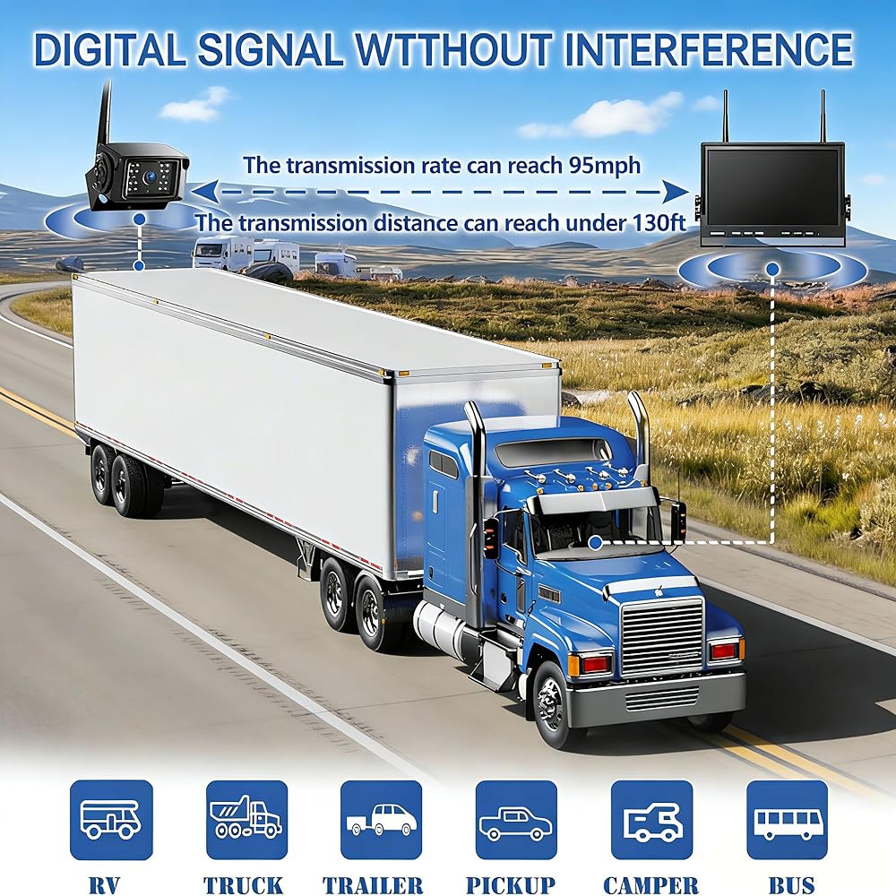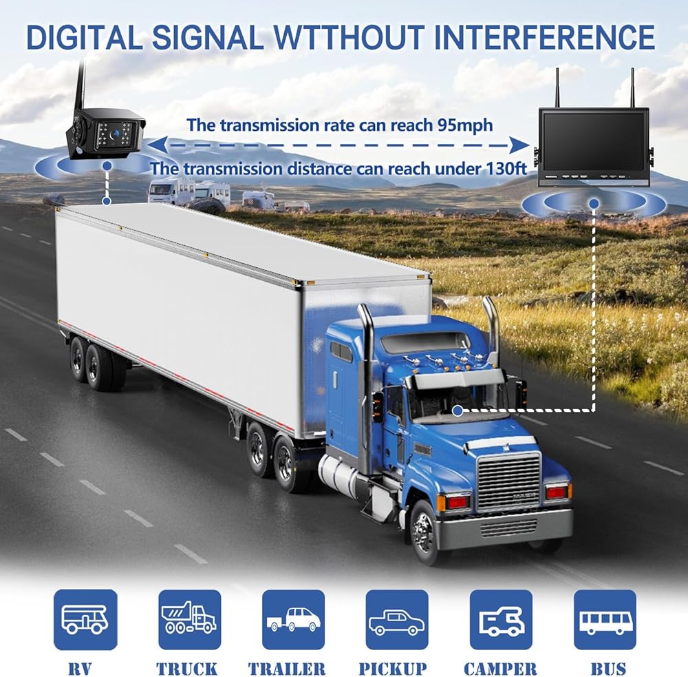 ☆【Upgrade Digital Wireless Signal】 Adopt HDCVI 4th Generation Digital Signal, 120ft anti-interference no delay, applicable for vehicles within 65 feet vehicle(12-24V), give you a stable and clear monitor of road condition, be your reliable assistant.