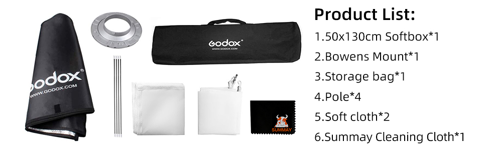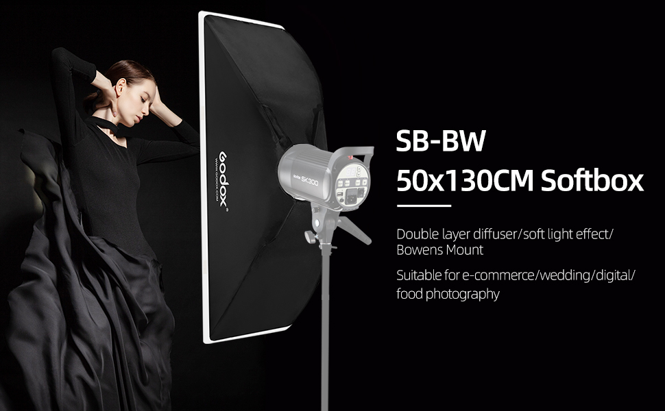 Photo Studio Softbox : The light diffuser surface is 50x130 cm with Bowens Mount, The size of the softbox makes it desirable for fashion photography, portraits and medium to large product shots.