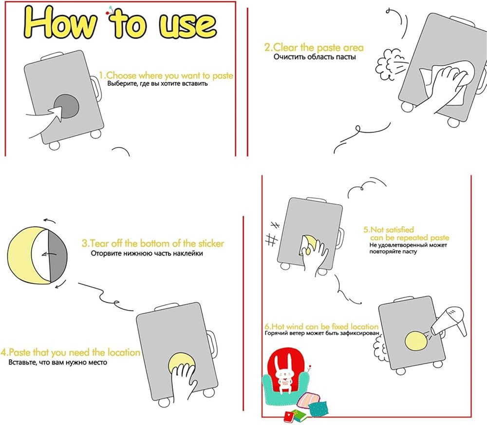 Clean the surface and keep it have no water, then stick on wherever you like.Start your DIY decoration.