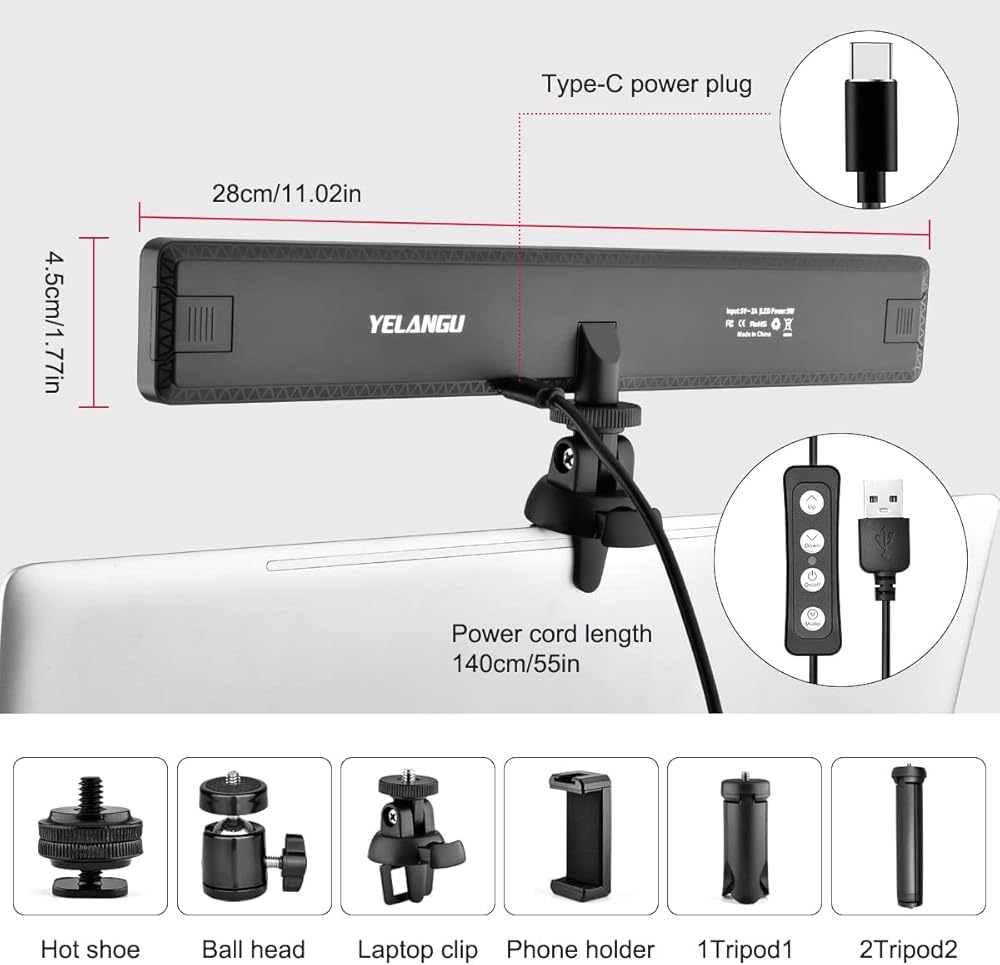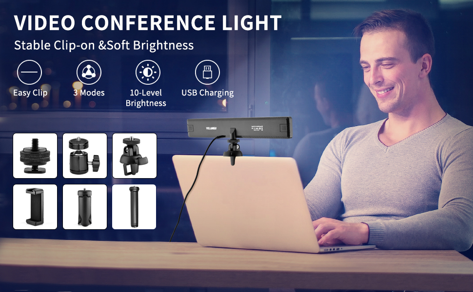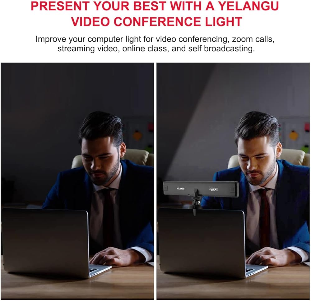 【MAKE MULTIPLE VARIABLE COMBINATIONS WITH ACCESSORIES FOR MOBILE PHONES, COMPUTERS, AND CAMERAS.】:Present your best with a YELANGU video conference light, Improve your computer light for video conferencing, Zoom calls, streaming video, online class, and self broadcasting. The desk light for video conferencing kit works as your video lighting for your monitor. Improve your lighting for Phone Selfie with streaming lights.