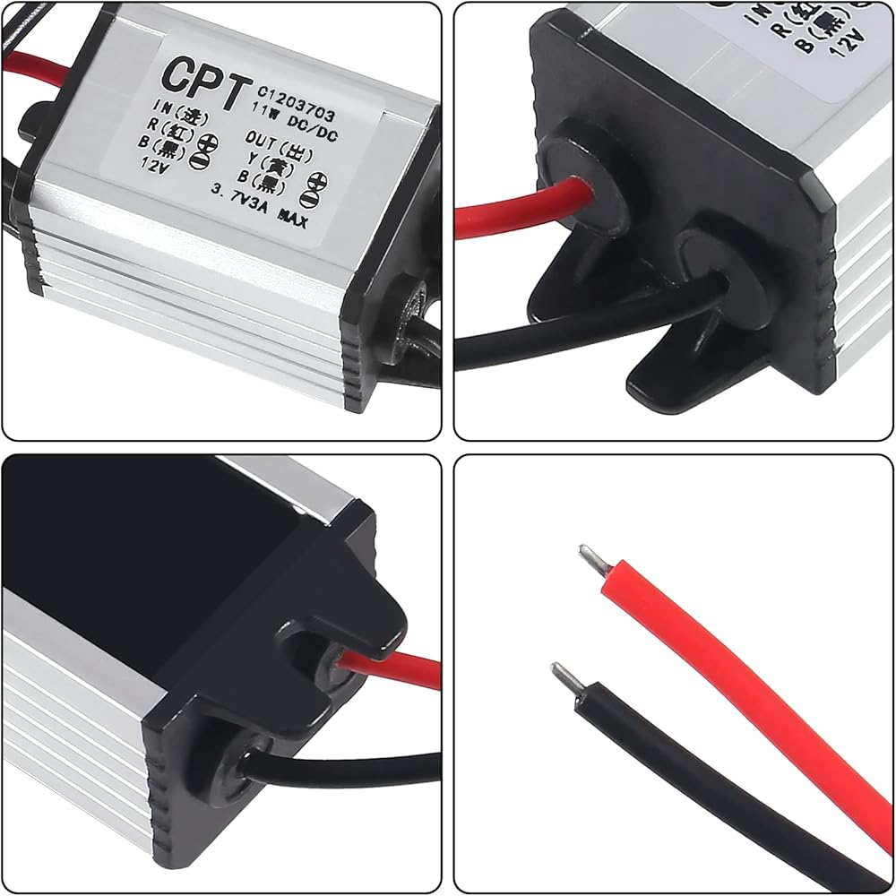 2pcs 12V to 3.7V Converter DC Step Down Buck Voltage Regulator Power Supply Transformer Module 3A 11W Waterproof Car Power Converter for Car Auto Motor