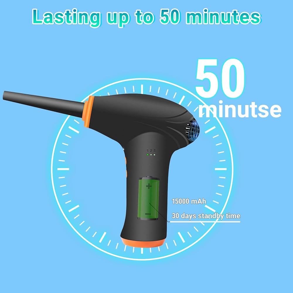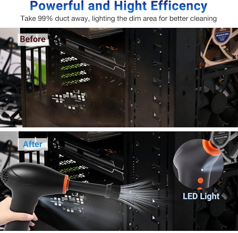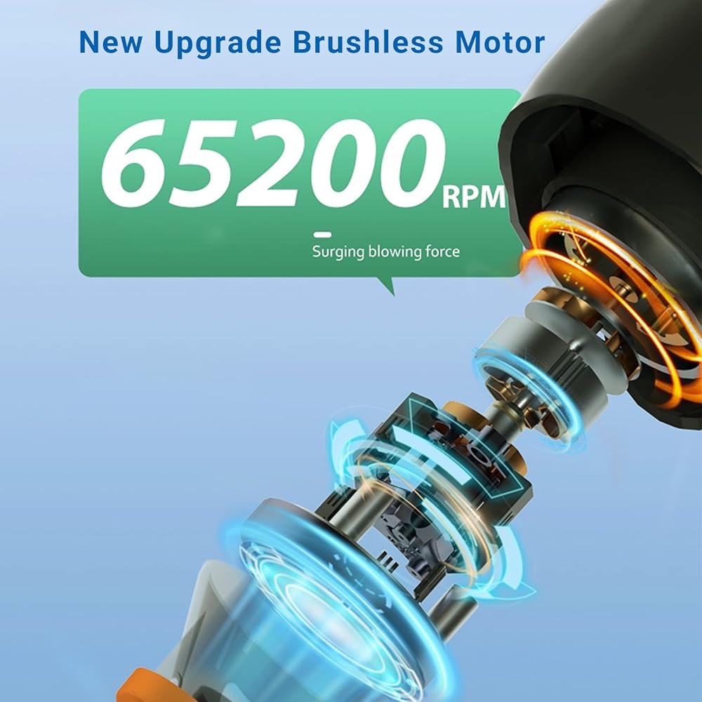 【Long Service Life】Electronic Air Duster is made of Brushless motor, which service life reaches 20,000 hours.The brushless motor has no brushes, the friction force is greatly reduced during operation, the operation is smooth, and the noise will be much lower.