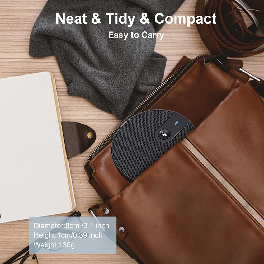 【Superior Materials & Compact Portable Design】Veetop conference mic is made of durable and high-quality zinc alloy & metal mesh materials. The base is equipped with non-slip pads, which keep it from sliding anywhere. Handy design, it is about the size of a small hand's palm, perfectly on the conference room table without taking too much space. Just put the conference microphone into your pocket or briefcase.