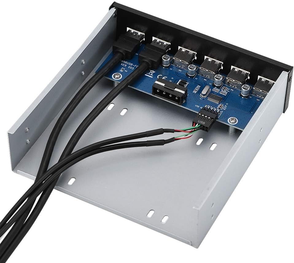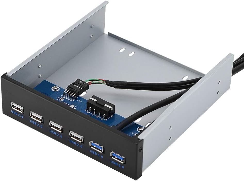 Front Panel USB Hub 6 Port, 4 Port USB 2.0 + 2 Port USB 3.0 Drive Bay 5.25 Inch with 9/19 Pin Connector for Desktop Computer Multi Connection