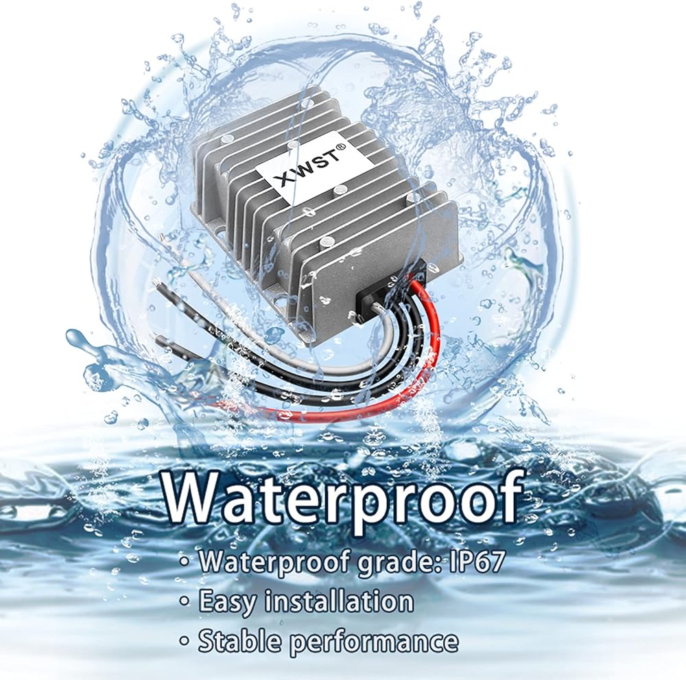 PROTECTION --- this voltage stabilizer comes with over-current protection, over-temperature protection; adopts potting technology, characterized by waterproof, dust-proof, moisture-proof and shock-proof, can be used in various situations such as car, outdoor, underground, etc.