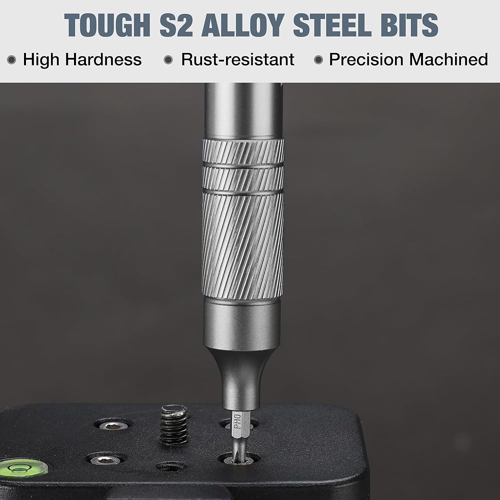 High Quality: The tiny screwdriver set bits are made of tough S2 alloy steel with rust-resistant nickel coating, providing increased strength and extended service life. Precision machined tips easily fit small screws.