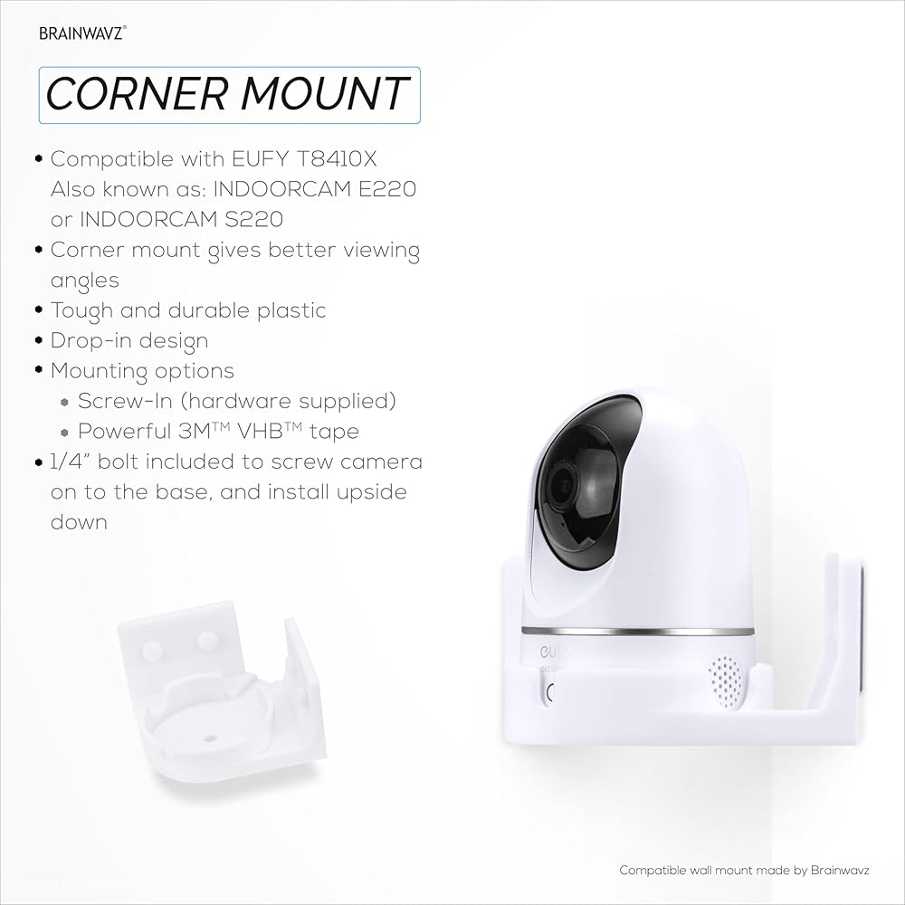 WALL MOUNT HOLDER: Mounting bracket compatible for Eufy S220 Security Solo Indoor Cam (T84 10X). Mount your camera on any vertical surface for better viewing angles, plus it's out of the way and won't get knocked or accidentally moved. This product is manufactured and designed by Brainwavz, this product is compatible with the Eufy S220 camera