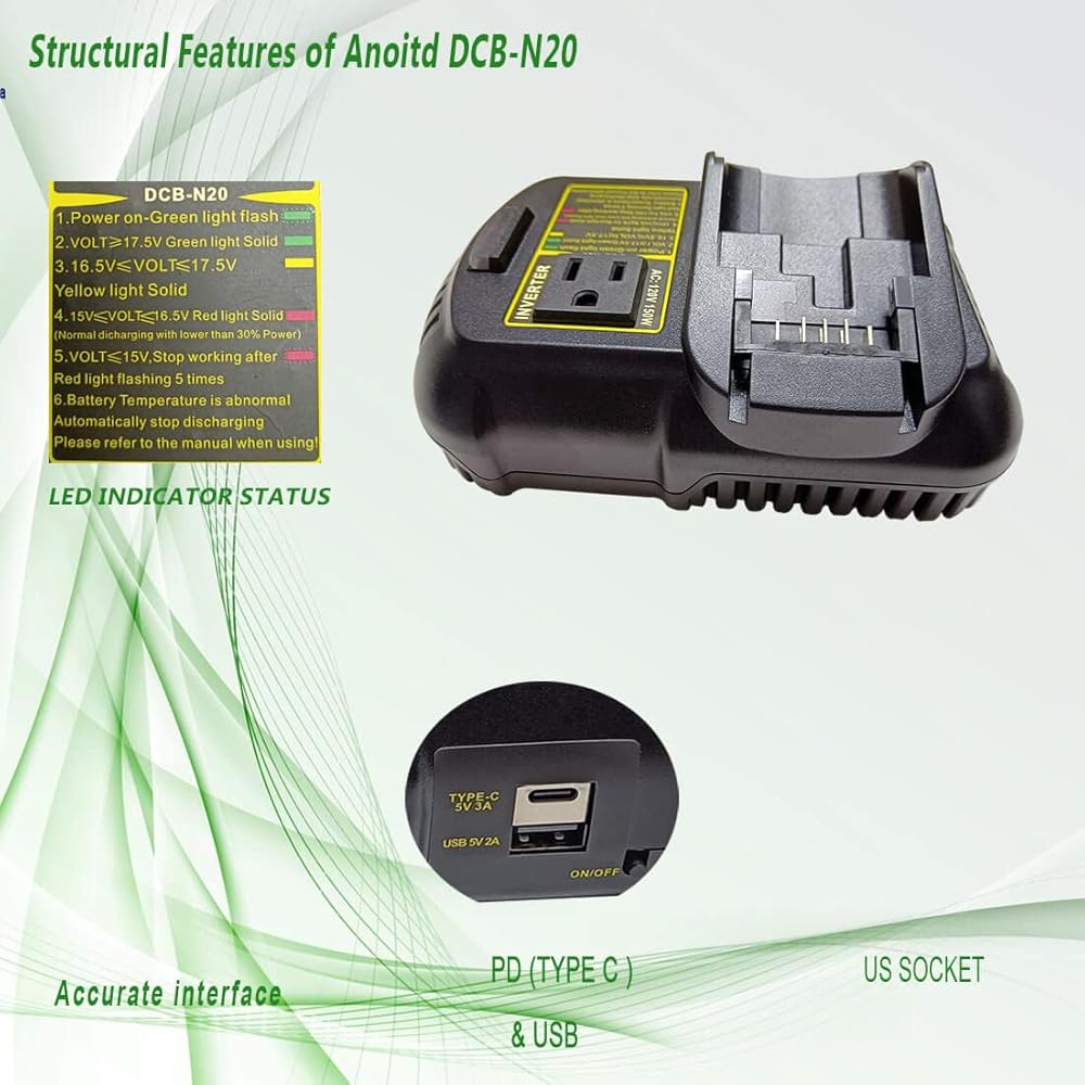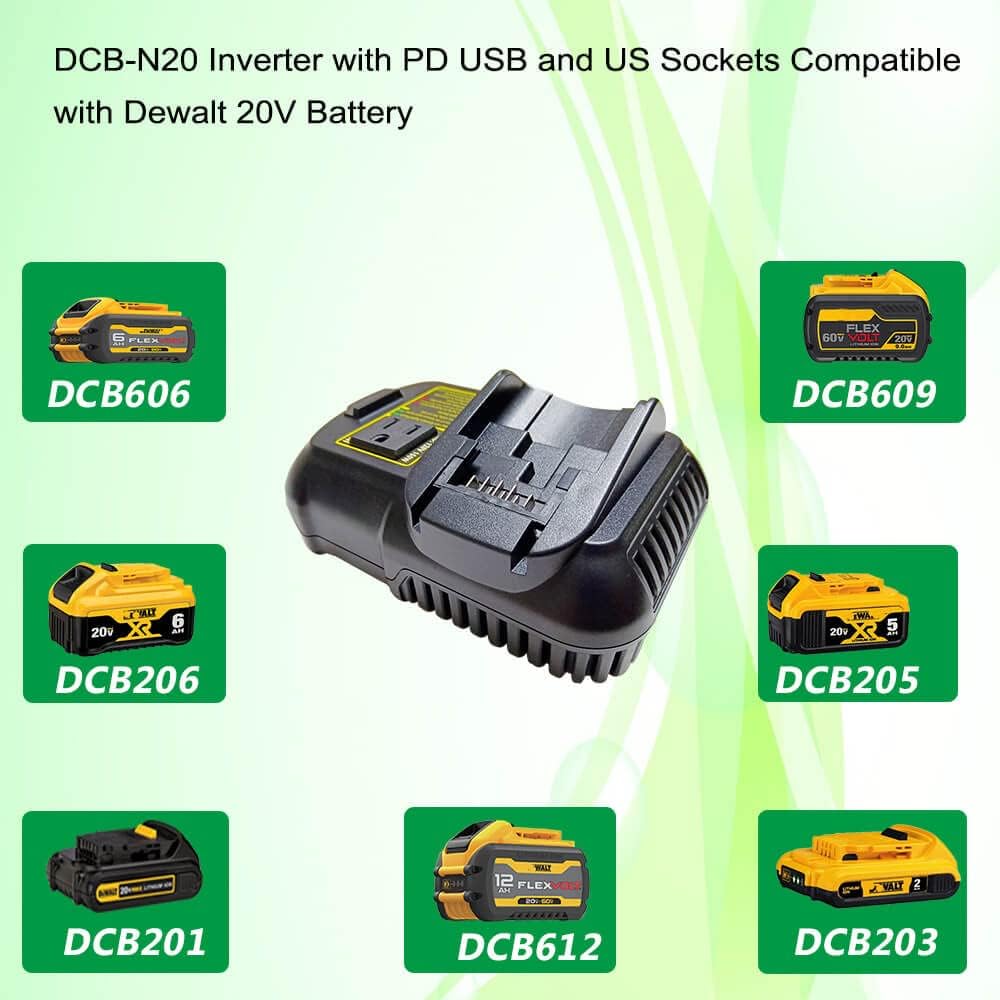 Compatible with Dewalt 20V Charger:DCB102BP, DCB100, DCB101, DCB104, DCB105, DCB107, DCB115, DCB118, DCB119.