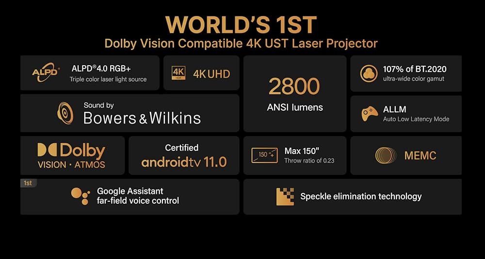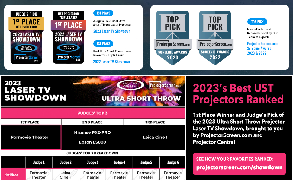 Formovie Theater + Spectra Projection Vantage Bundle - Ultra Short Throw Projector 2800 Lumen Triple Laser Fengmi T1 Global LaserTV - Home Theater (- 90" Spectra UST Screen/Spectra Slider Tray)