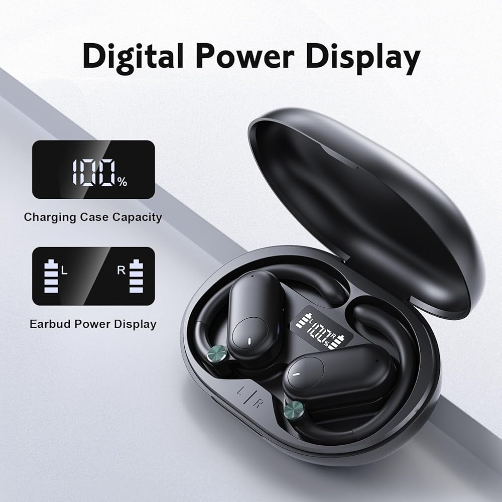 Open Ear Earbuds, F15 Bluetooth Earbuds Wireless Charging, Deep Bass, Open Fit, 60HRS Playtime, Digital Display Charging Case, Bone Conduction Earbuds with Mic for Workout, Running, Cycling, Walking