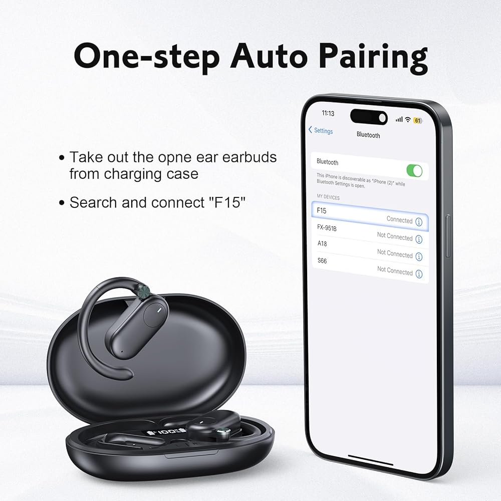【Incredible Audio Experience & Quick Connection】Hyyeosd open ear bone conduction headphones provide you premium audio quality while keeping your ears open. With Bluetooth 5.3, wireless earbuds Bluetooth with mic can be connected instantly once picked up, and automatically reconnect for future use, bringing a stable listening experience.