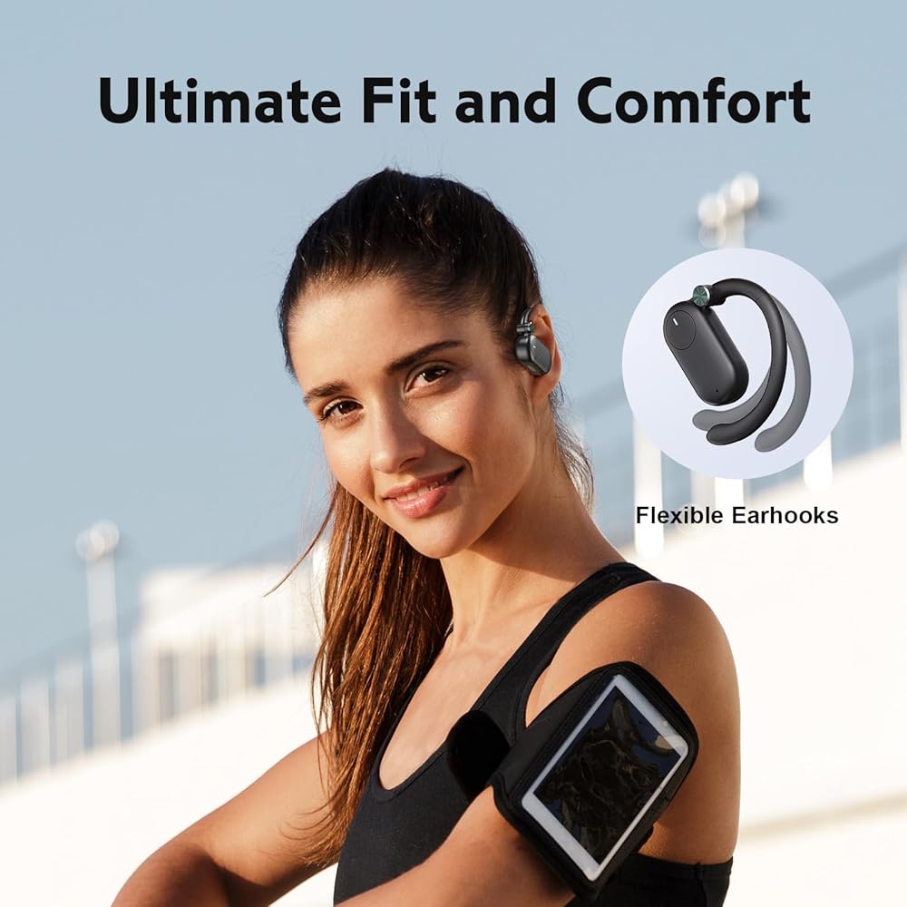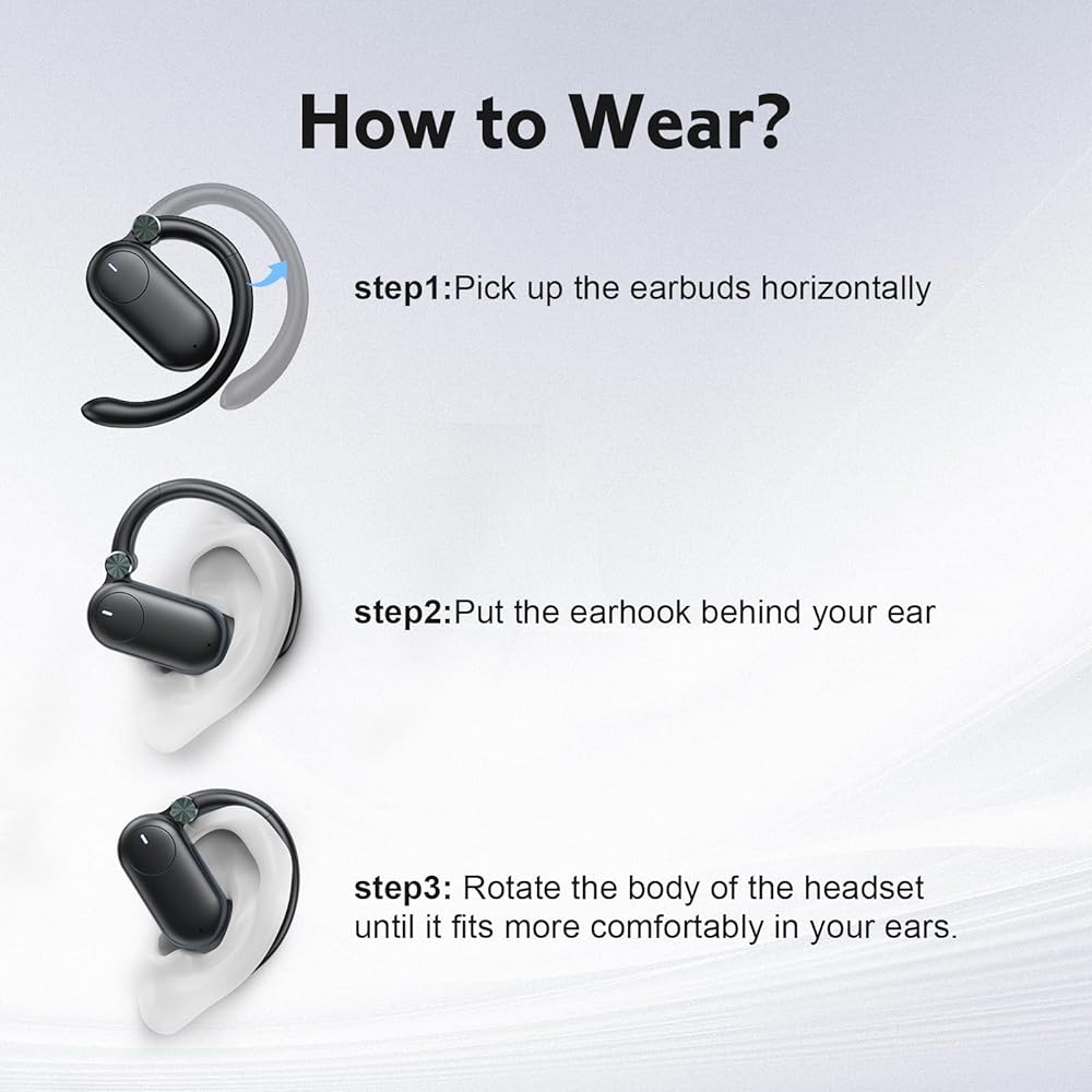 【Open Ear Headphones】Hyyeosd open ear earbuds feature a fully open-ear design that earbuds rest gently and securely on top of your ear, avoiding potential ear infection, fatigue and discomfort, ensuring long-lasting comfort for extended use. Open ear bluetooth headphones aim to deliver superior sound to you in a natural, comfortable way. Without any cumbersome neck wire or neck band, These workout earbuds are suitable for everyone and all ages, whether you have long hair or wear glasses.