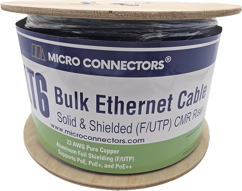 Cat 6 Solid F/UTP bulk Ethernet cable is perfect for your office or house cabling project. Our cable allows for maximum performance while minimizing electromagnetic interference/radio-frequency interference (EMI/RFI) and almost eliminating alien crosstalk (AXT). Suitable for fast, Gigabit, and 10-Gigabit Ethernet and supports bandwidths of up to 550 MHz. Pure bare copper produces a stronger signal along with better conductivity and flexibility when compared to copper clad aluminum (CCA). Designed to withstand sunlight, dirt, and moisture. Rugged and durable for extreme environments. Connect to what matters: computers, printers, gaming consoles, routers, ethernet extenders, switch boxes, VoIP phones, IP cameras, PoE devices, etc. All data cables meet or exceed ANSI TIA/EIA 568-C.2 standards, and are RoHS compliant.