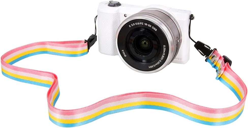 حزام عالي الجودة بطباعة عصرية ونقية، نايلون أسود متطابق مع مثبتات بلاستيكية عالية الشد لضمان حزام كتف للرقبة بتصميم كاميرا عصري رائع.