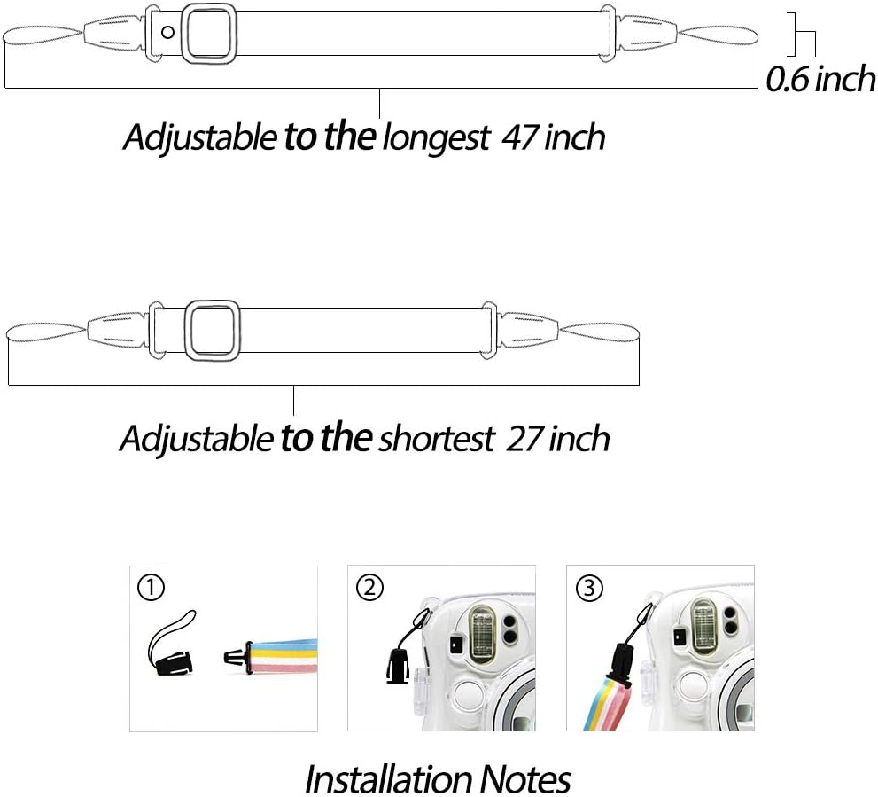 الطول القابل للتعديل يجعل حزام الكاميرا مناسبًا لمعظم مستخدمي الكاميرا. طول جزء الحزام 63 سم، وطول كل جانب من نسيج النايلون 18 سم، والطول الإجمالي 120 سم.