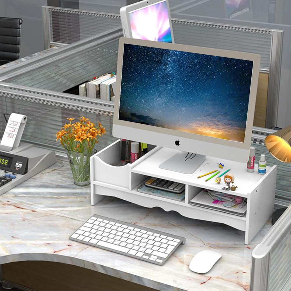 KUAIYU Monitor Riser, Monitor Stand, Monitor Stand for Desk, White Computer Monitor Stand, Monitor Stand Riser Shelf with Organizer, Compatible Computer, Desktop,Laptop. (5.9 inches)
