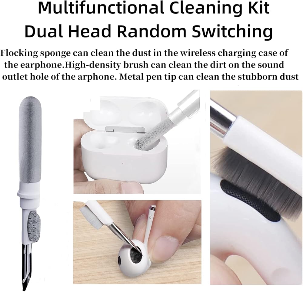 Flocking Sponge and High-density Brush: The delicate and soft flocking sponge can clean the dust in the wireless charging box of the earbuds, and the high-density brush can easily clean the dirt in the sound hole and other parts of the earbuds, which is a perfect match