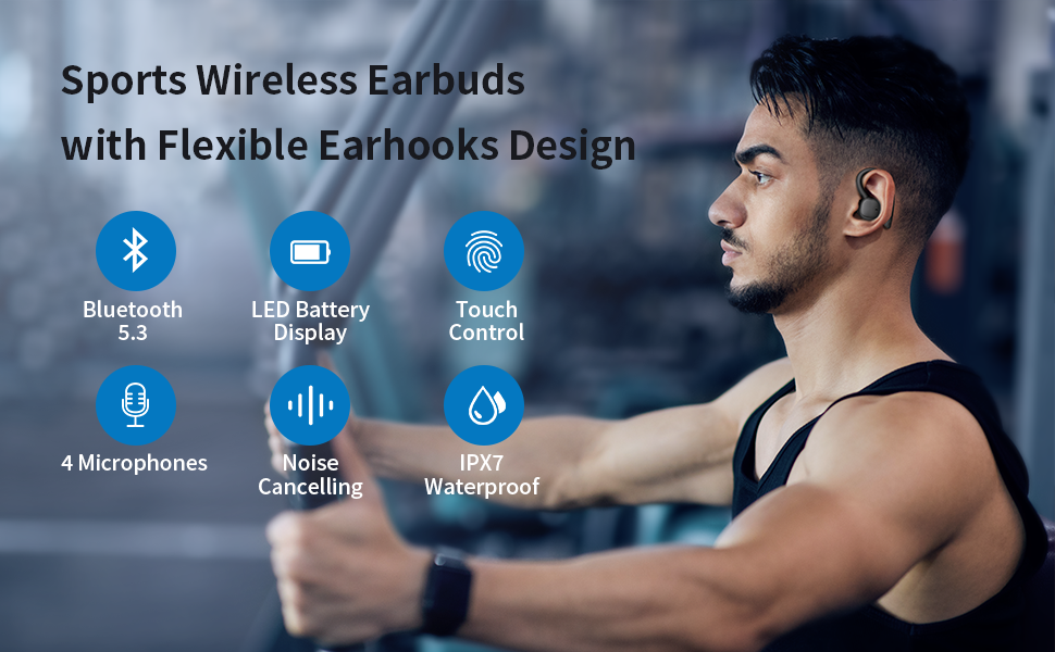 Unique Design for Sports Headphones: Flexible silicone ear hooks and an ergonomic design ensure the wireless earbuds stay more comfortable and steady in your ears. Ear hooks are made from soft silicone material that adapts to different sized ears. Sport headphones to keep you motivated, a secure fit that won't shift or fall out during long hours of exercising