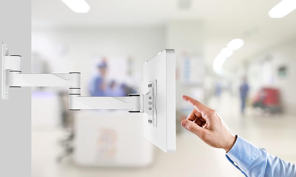 The functional design of the VESA Wall Mount Arm with enclosure is the perfect solution for your classroom, conference room, medical office, or any work environment that requires a secure, versatile wall mount and enclosure for LED/LCD monitors and tablets. The mounting plate rotates 360 degrees to allow for either horizontal or vertical device orientation. Articulating arms smoothly extend from 2 inches to a maximum 14.4 inches. The mounting plate also tilts to allow for comfortable viewing from virtually anywhere in the room. This wall mount comes complete with a durable, easy-to-use security enclosure that keeps your tablet or monitor protected from theft with a powerful lock and key security system, all the while, allowing access to all buttons and ports. The enclosure is designed with ample room to allow interior cable routing to keep charging cords neat and out of the way.