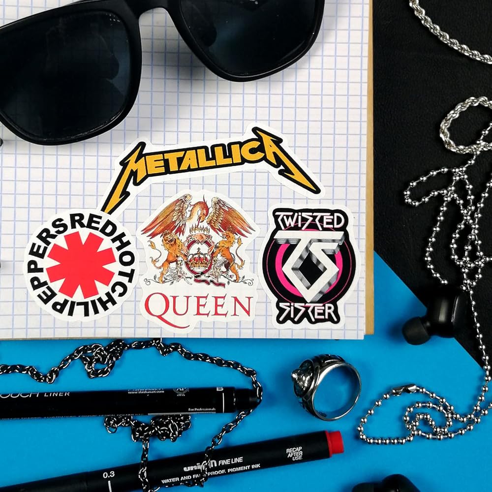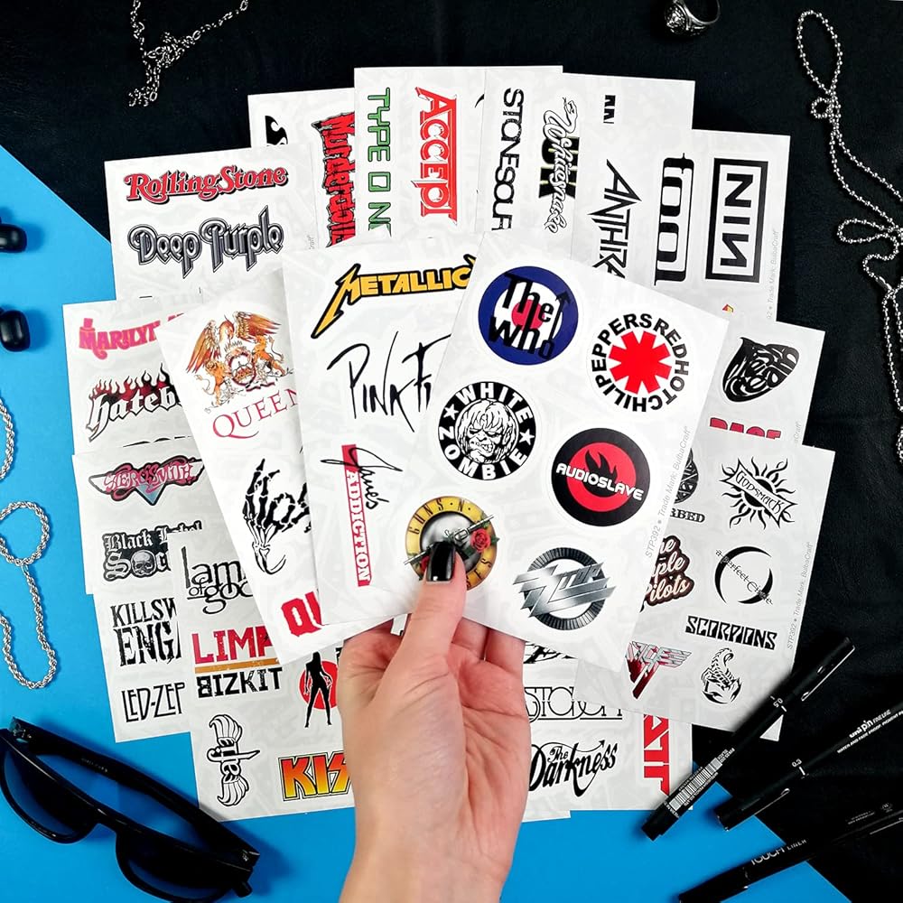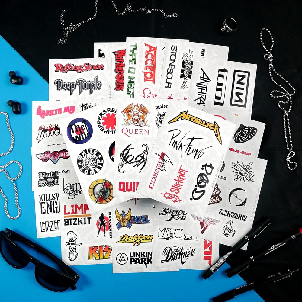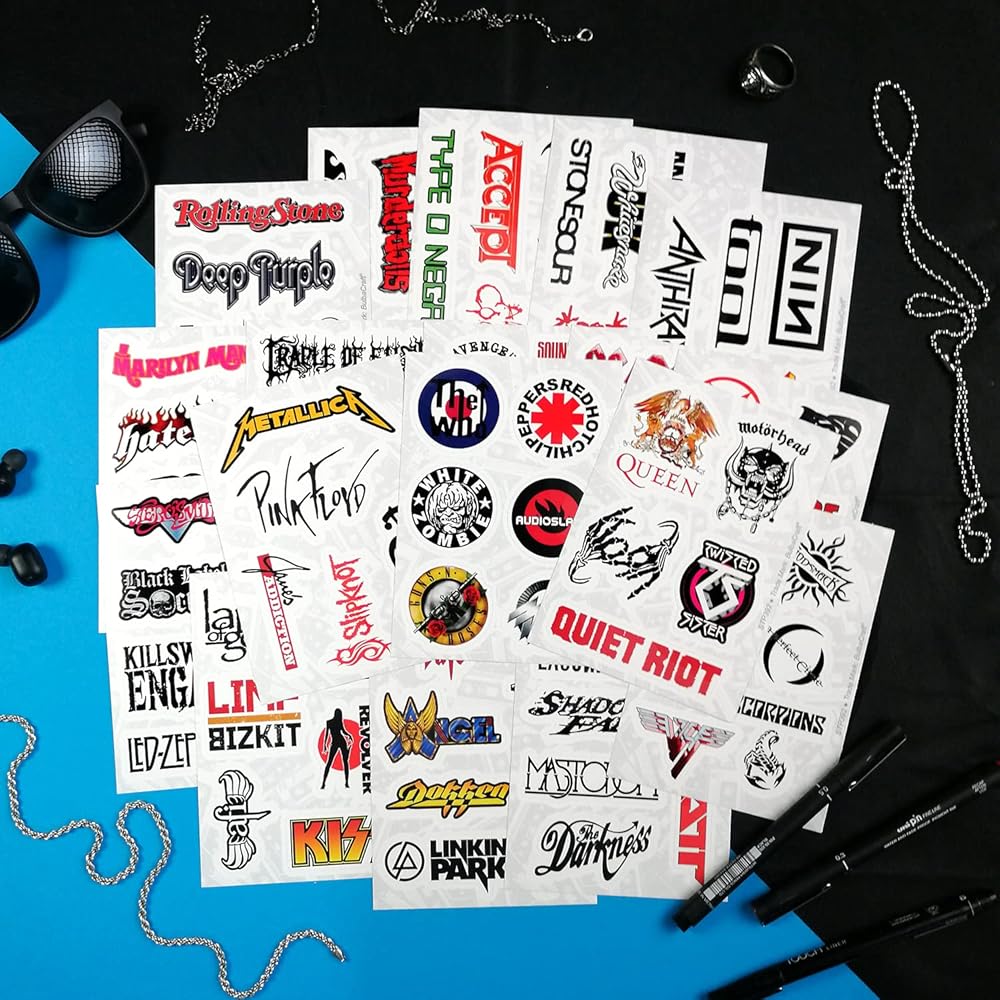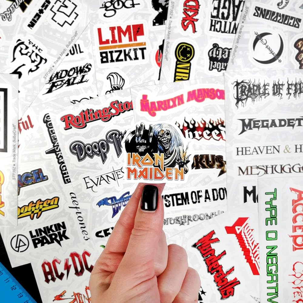 BulbaCraft 100Pcs Classic Rock Stickers, Rock and Roll Stickers, Rockabilly Band Decals, Classic Rockabilly Gifts, Waterproof Decals, Guitar Emblems, Music Emblems, Gifts for Women & Men