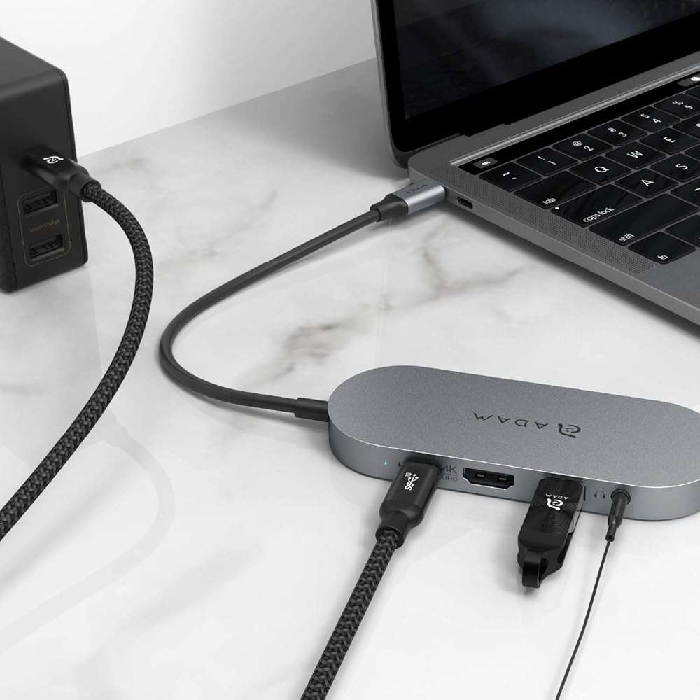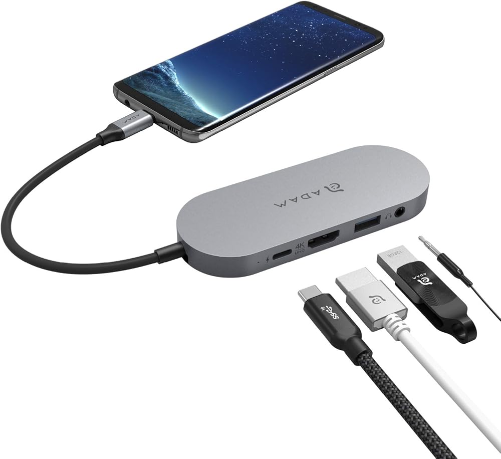 ADAM elements USB-C Hub with SSD Storage (240GB) External Drive with 60W Power Delivery 3.0 Type-C Port, HDMI for 4K30Hz, USB-A 3.1 Port and 3.5 Headphone Jack, Compatible with MacBook Pro, iPad Pro