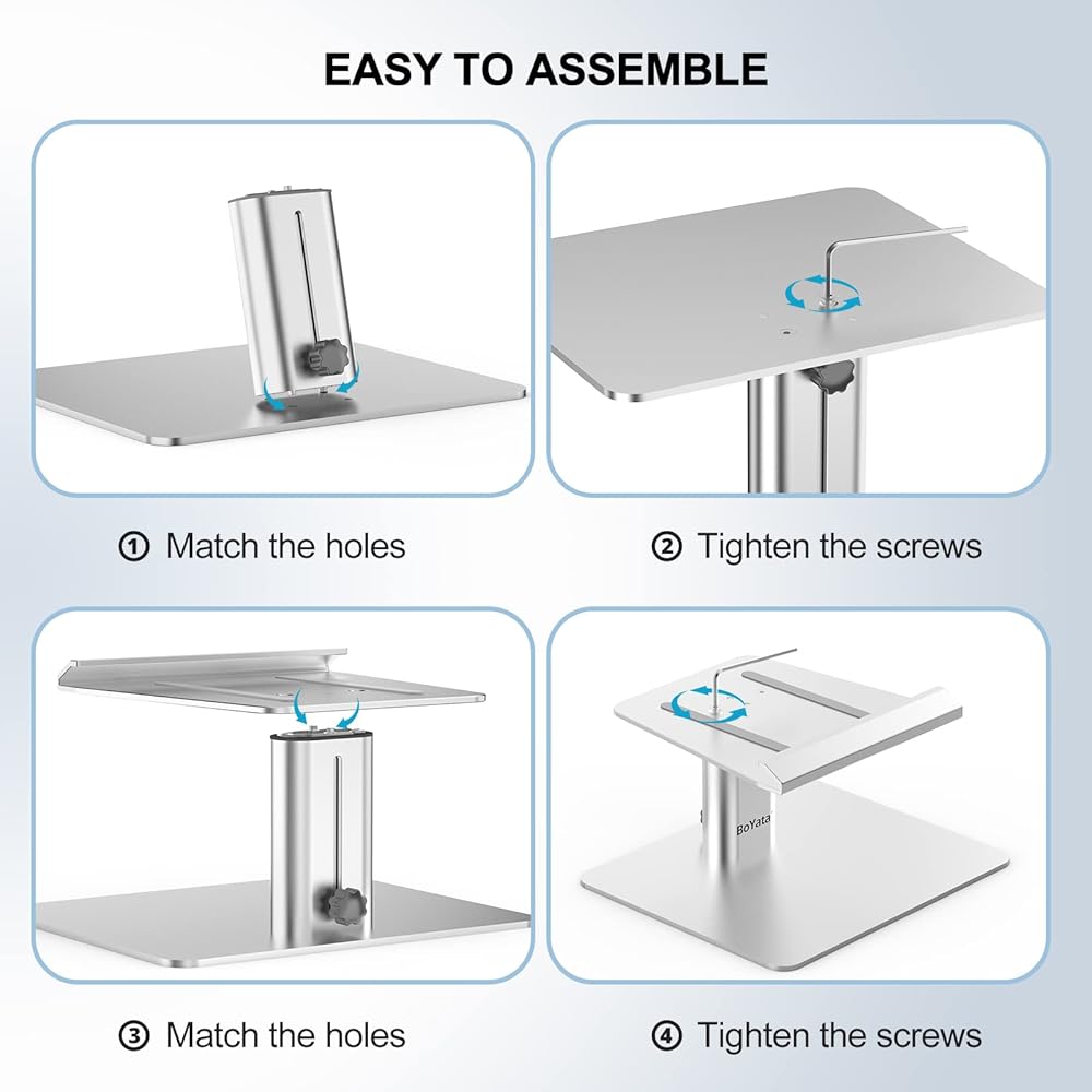 【Easy Installation】The adjustable monitor stand consists of 2 panels and a support rod. Easy to assemble in 5 mins, match up the holes and connect the parts by tightening the screws (Screwdriver is included).