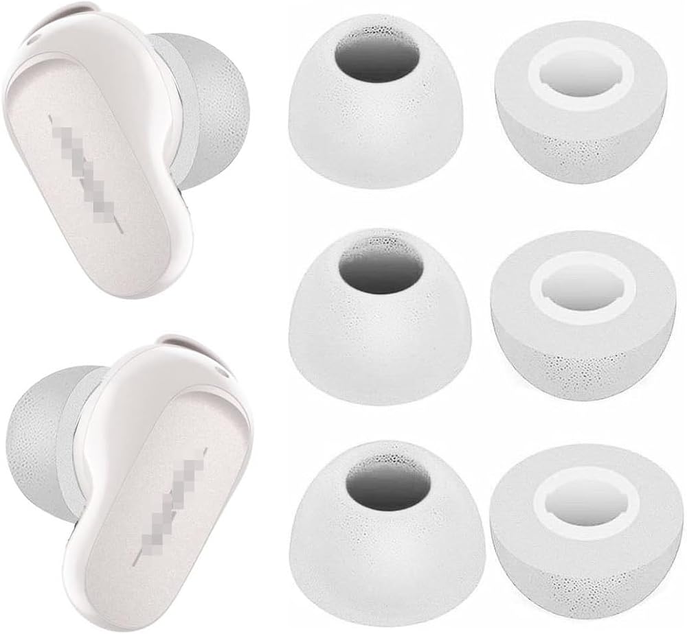 Replacement Foam Ear Tips Compatible with Bose QuietComfort Earbuds II, perfectly fit in the charge case and give your Earbuds a new life when the OEM tips missing or when the OEM tips do not fit for you ears.