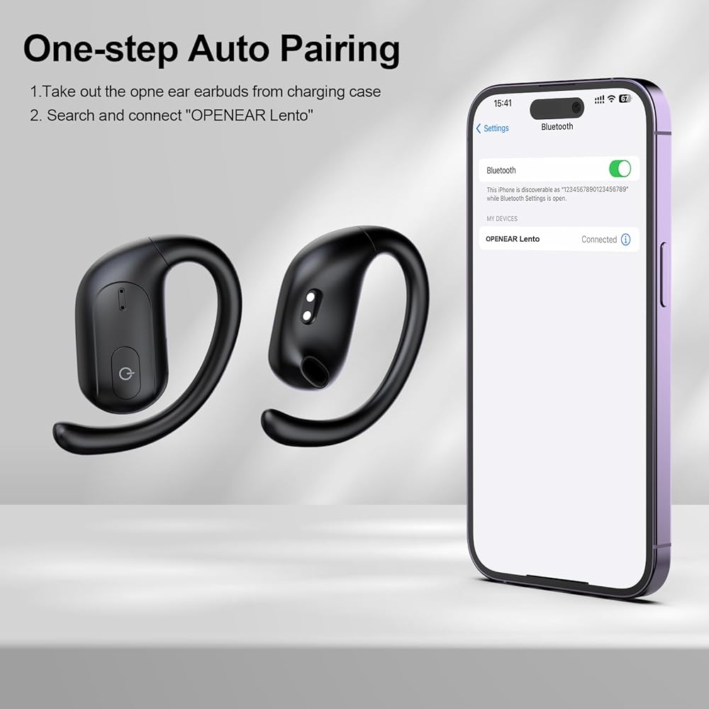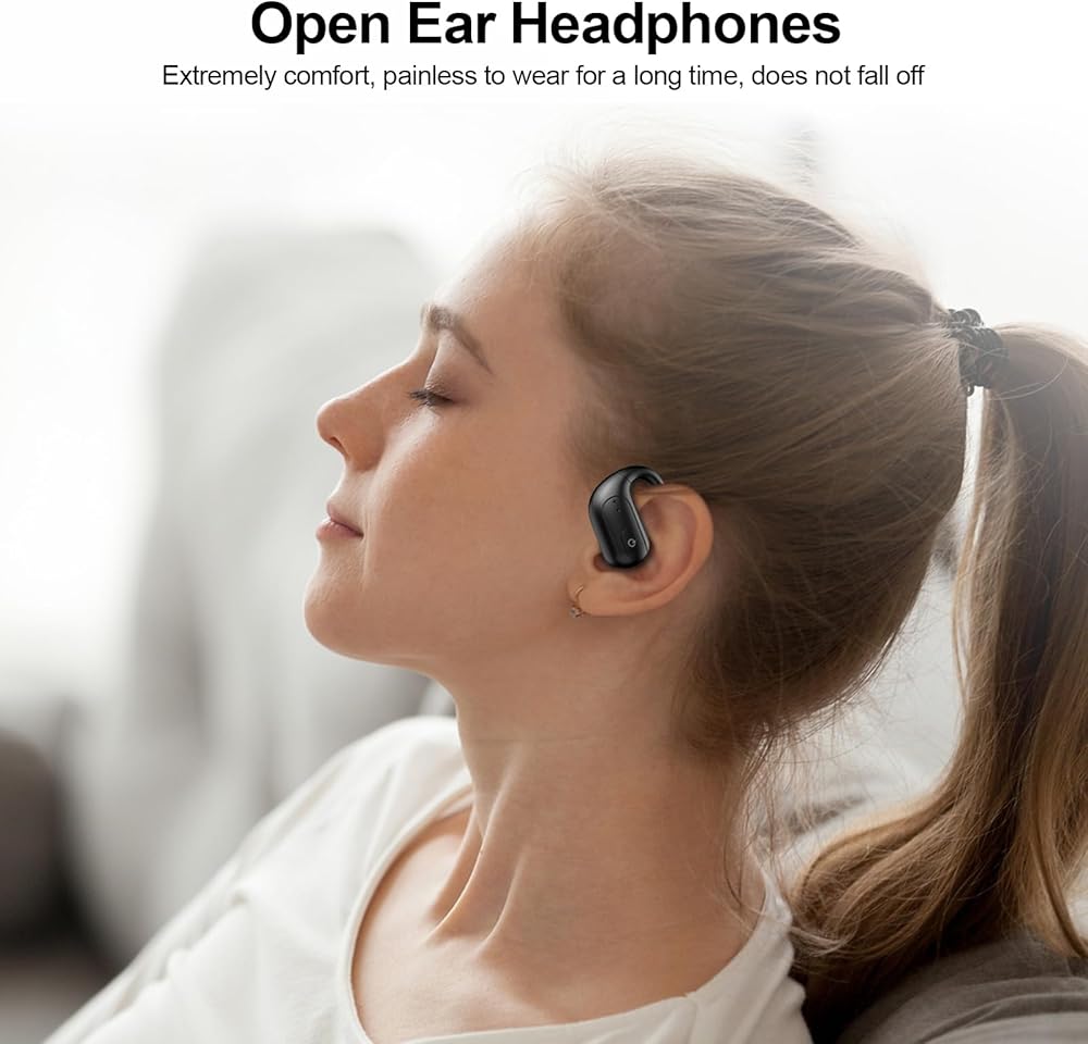 【Safety & Perceive Your Surroundings】Hyyeosd wireless earbuds Bluetooth don't go into your ears, you can hear music and ambient sounds at the same time. While exercising or working, you can listen to music while hearing the sounds of approaching cars and family members, and be aware of your surroundings.