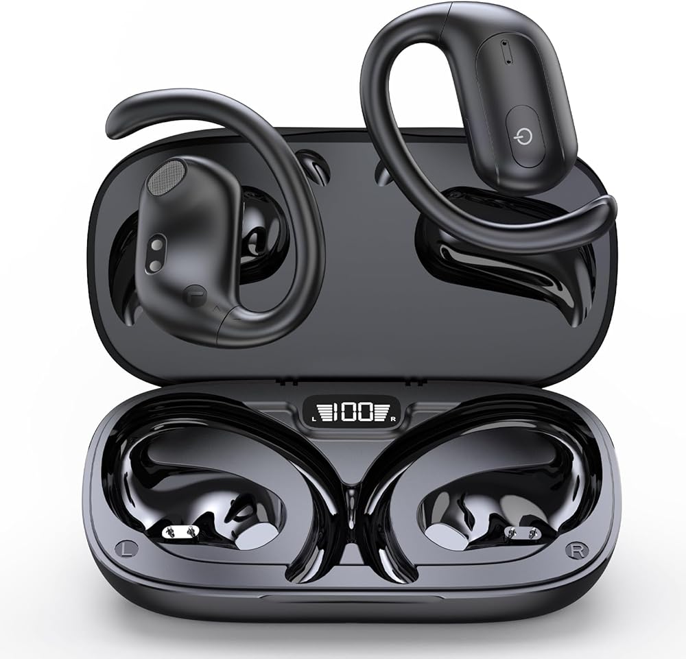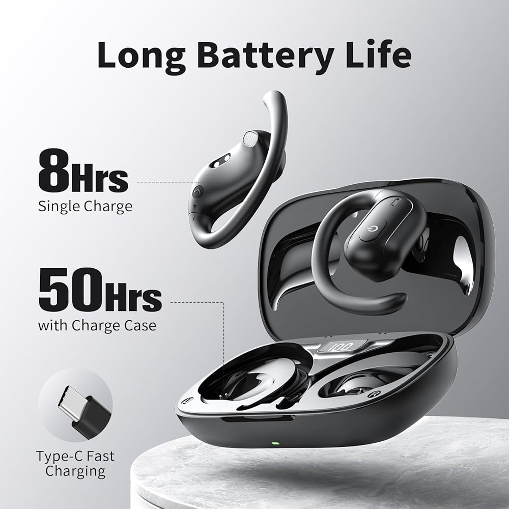 【Up to 60 Hours Playtime】The B1 workout earbuds provide 8 Hours playback per one charge and the charging box can be extended to 60 Hours playback with the portable charging case. The slim charging case is convenient to carry with you, and these open ear wireless headphones / Bluetooth headsets have a total battery life of up to 60 hours, ensuring uninterrupted listening for extended periods.