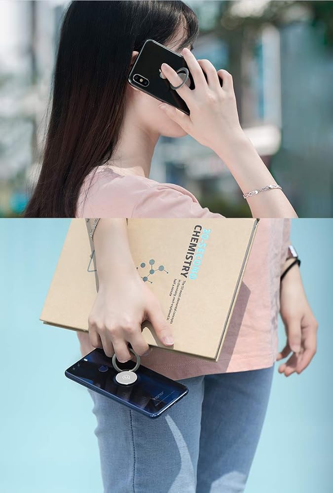 [Superior Functionality] - 360° rotation and 100° flip capabilities create the perfect phone stand, allowing you to watch your favorite videos with adjustable angles on any surface. This ring acts as the perfect phone grip, allowing you to take selfies with ease, carry your phone with one finger while carrying bags, use it for jogging, playing games in bed and more. Never drop your phone again.