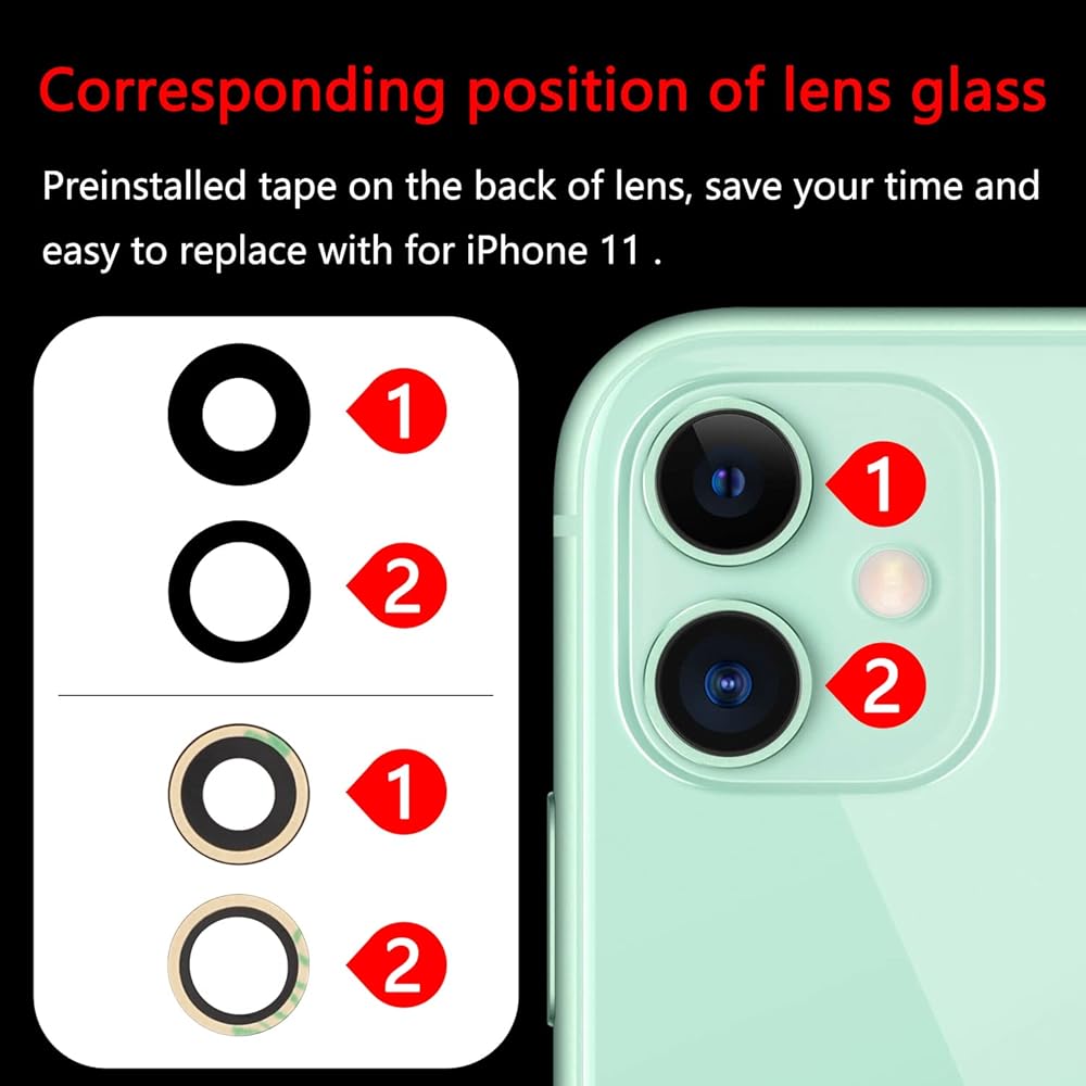 قطعتين من زجاج عدسة الكاميرا الخلفية الاصلية من سوسدر لموبايل ايفون 11 6.1 انش مع مجموعة عدسات زجاجية للكاميرا لاصقة مثبتة مسبقا + مجموعة ادوات اصلاح + دليل تركيب
