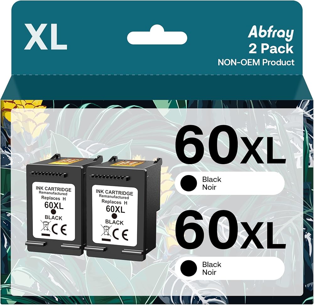 - اسم المنتج: بديل متوافق مع Abfray لخراطيش حبر HP 60 باللون الأسود، عبوتان