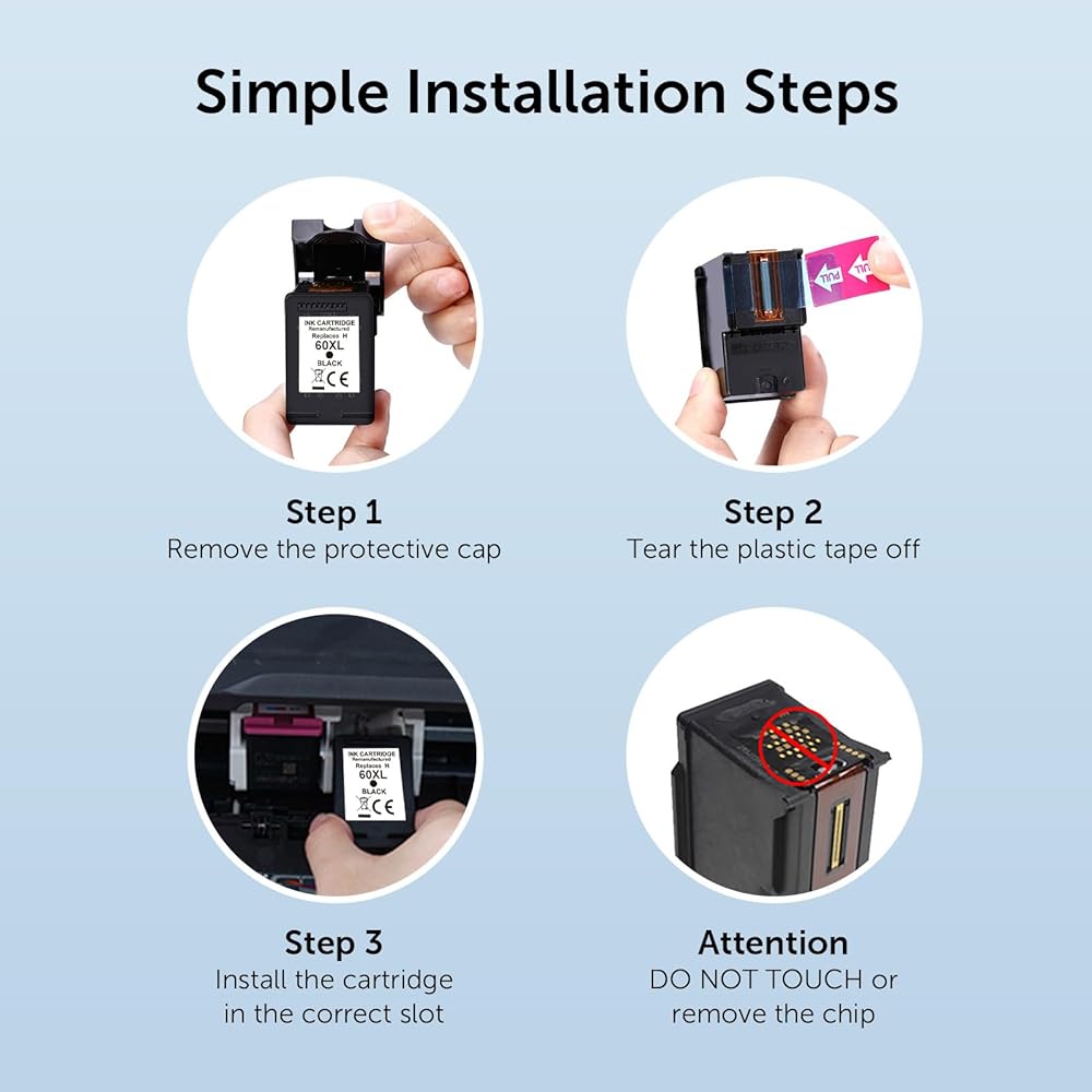 - نصيحة ودية 1: قبل تقديم الطلب، يرجى التأكد من أن الحبر الأسود مقاس 60XL يناسب طراز الطابعة الخاصة بك.