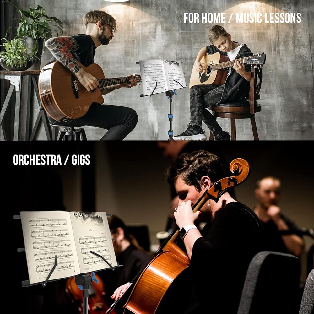 ✔️ Extremely Portable and Foldable Light Sheet Music Stand - Instead of carrying 2 separate stands, you need to carry just one, reducing the size and weight of your travel kit. .