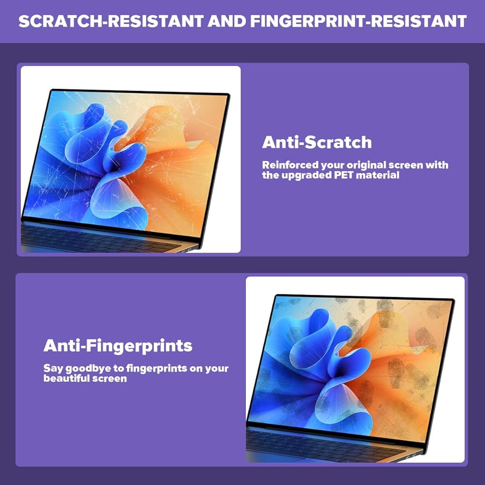 [Premium PET Quality]: Our Verponity laptop screen protector boasts a hydrophobic and oleophobic coating that provides comprehensive defense against scratches, marks, and fingerprints. It is easy to clean and keeps your screen looking pristine. The precise fit offers maximum coverage and protection, giving you peace of mind during work or play.