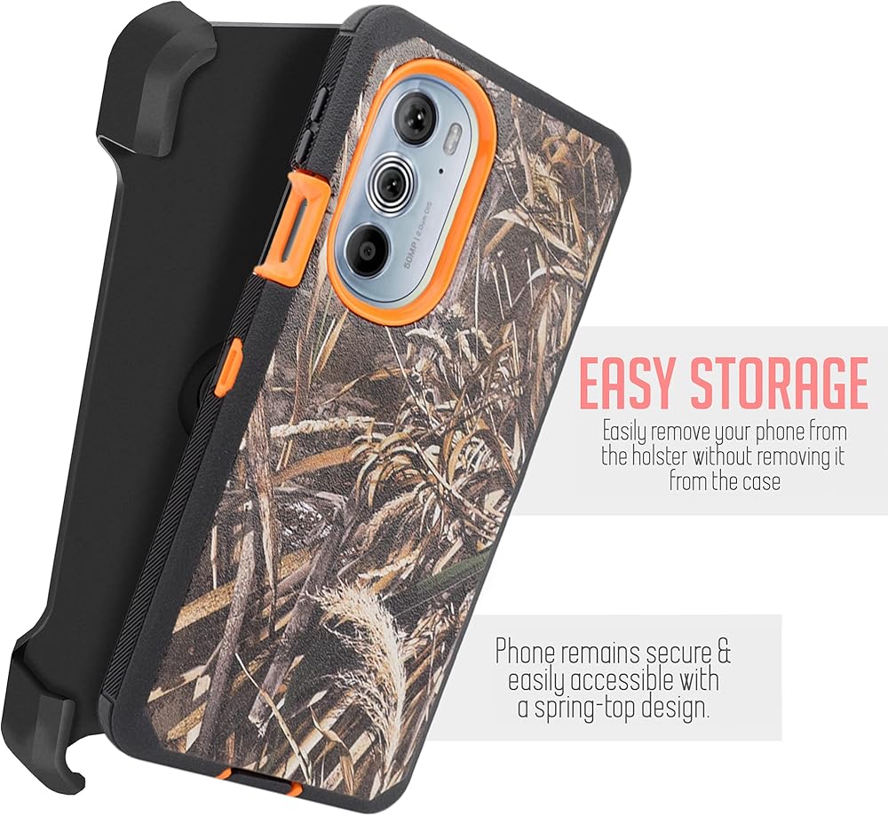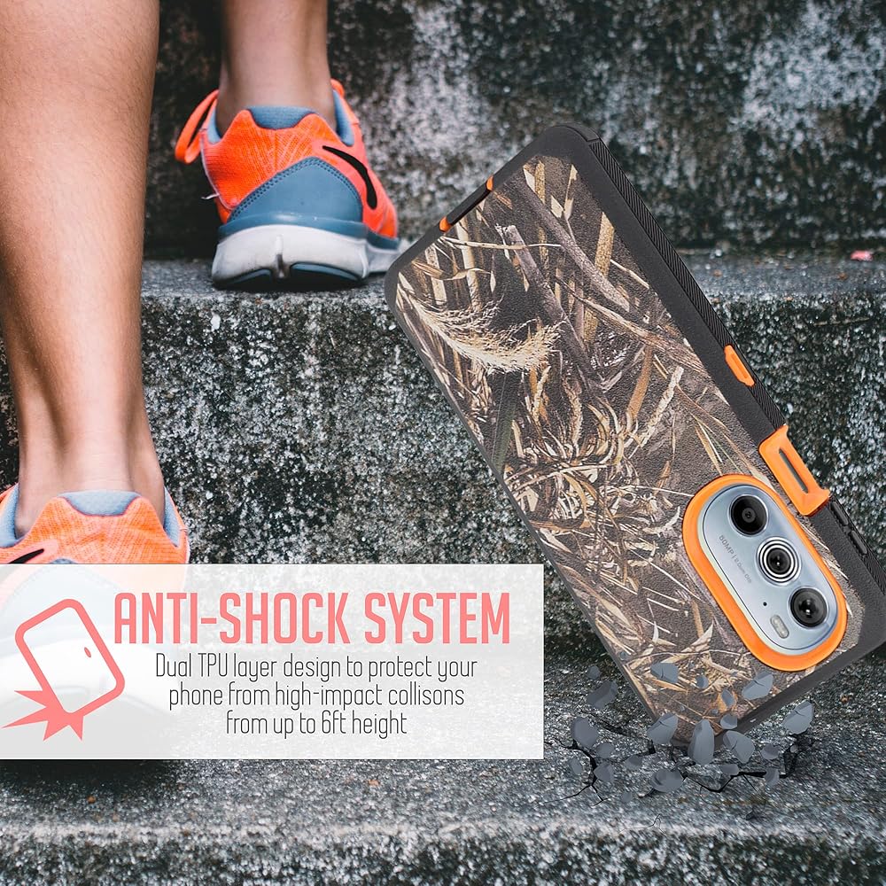 Jackpot Wireless Designed for Motorola Edge + Plus 2022, Moto Edge Plus 5G UW 2022, Moto Edge 30 Pro Phone Case with Built in Screen Protector, Swivel Belt Clip Holster Kickstand Holder (Camo)
