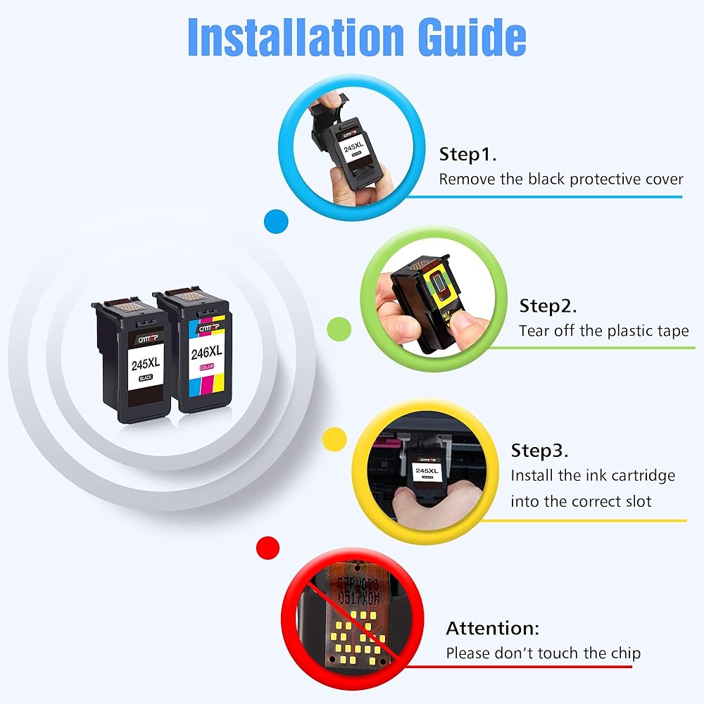 Compatible ink cartridges replacement for canon ink cartridges 245 and 246 to use with: Canon PIXMA MX492 MX490 IP2820 IP2850 MG2420 MG2520 MG2522 MG2550 MG2920 MG2922 MG2924 MG3020 TS3122 TS3320 TS3322 Printer.