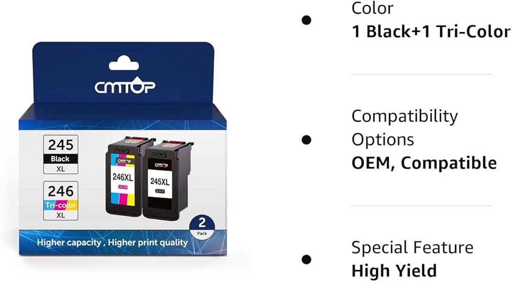 Contents: 1 pack 245xl black ink cartridge, 1 pack 246xl color ink cartridge.