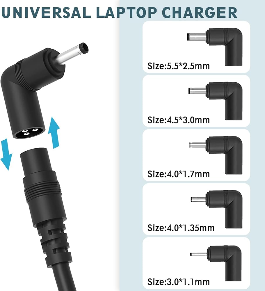 【All in one】 5 Different Connectors: 3.0x1.1mm, 4.0x1.35mm, 4.5x3.0mm, 5.5x2.5mm, 4.0x1.7mm. All round head interfaces of ASUS are included, so you have no need to confirm the model.